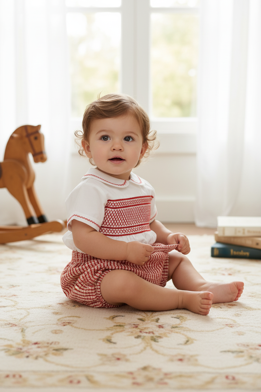 Ocean Baby Boys Red Smocked Tweed Buster Suit (NB-4Yrs)