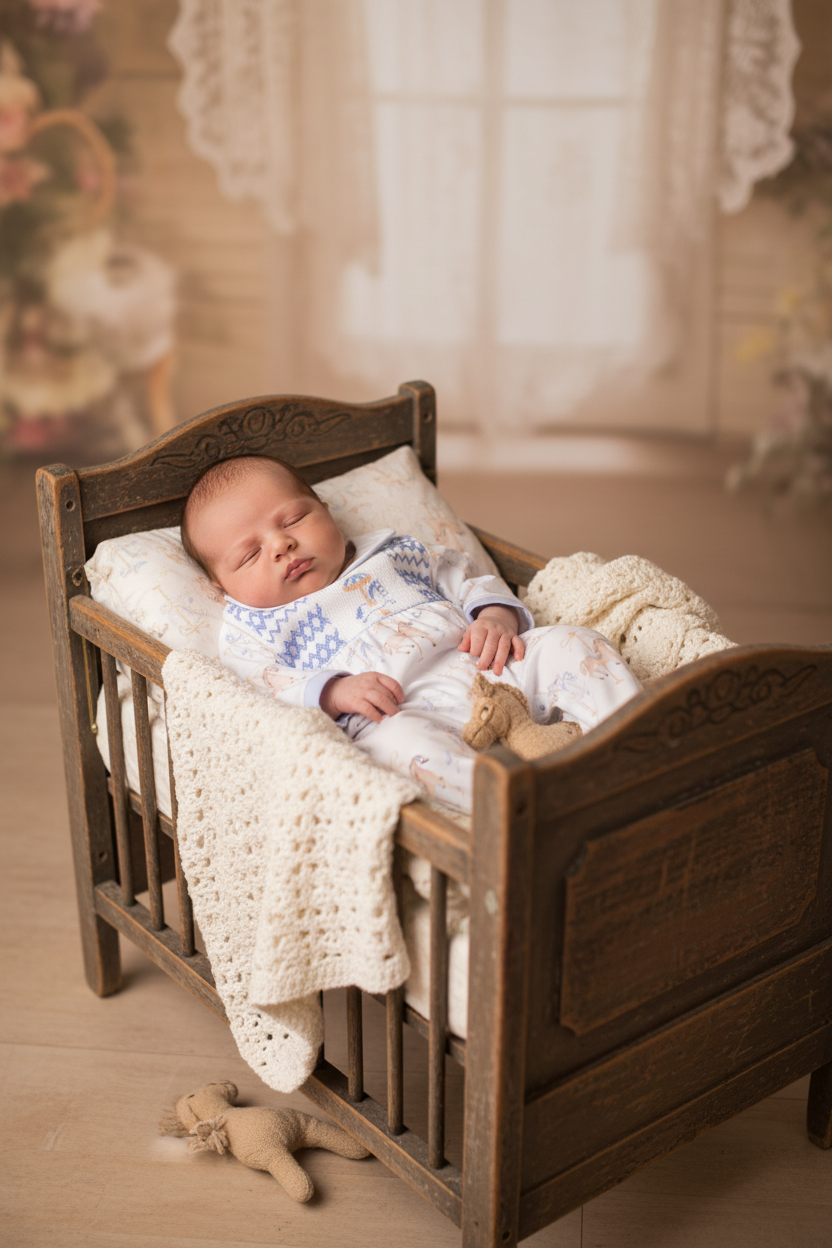 Ocean Baby Boys Smocked Vintage Toy Sleepsuit & Bib Set (NB-18M)