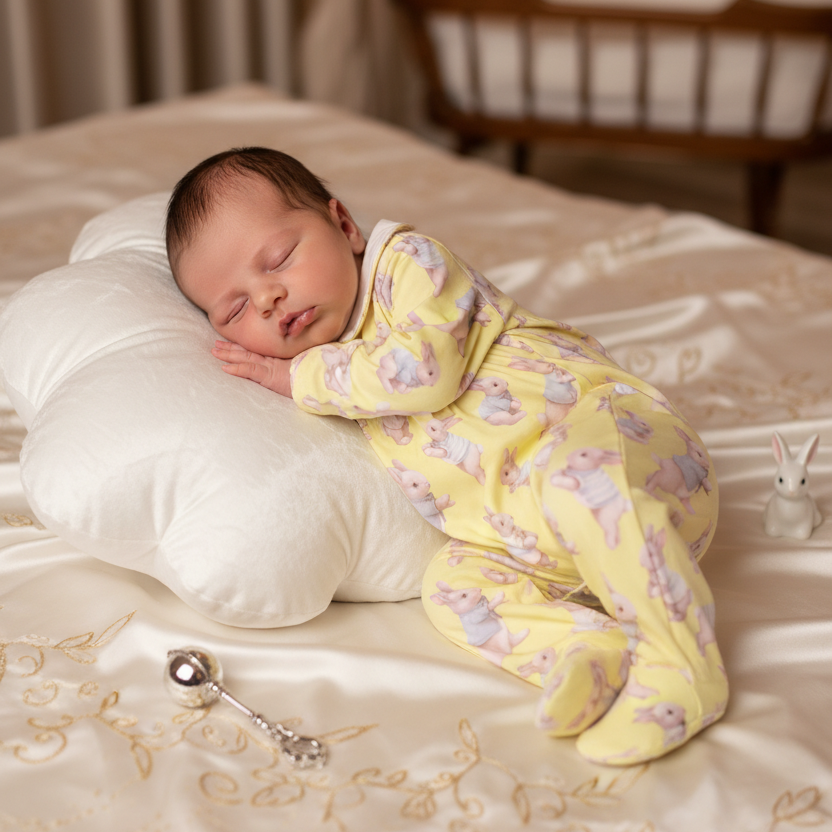 lemon cotton baby boys handmade sleepsuit outfit bunnies