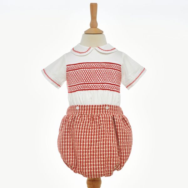 Ocean Baby Boys Red Smocked Tweed Buster Suit (NB-4Yrs)