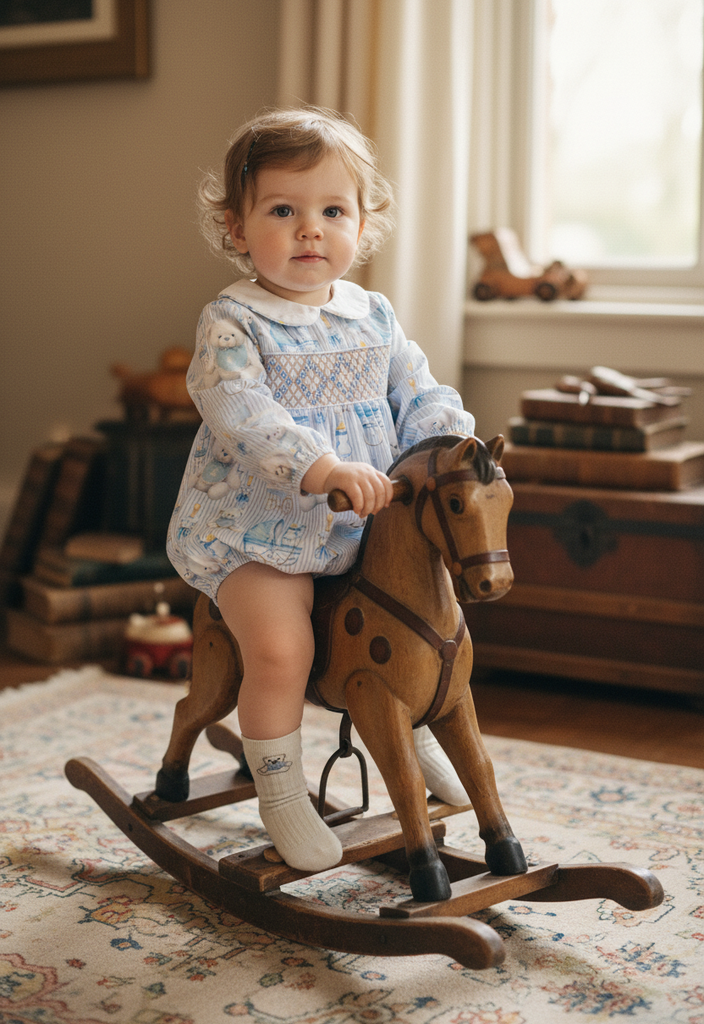 Ocean Baby Boys Rocking Horse Smocked Bubble Suit Set (NB-2Yrs)
