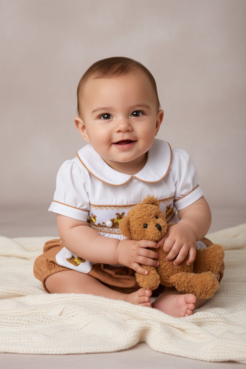 Ocean Baby Boys Baby Teddy Smocked Bubble Suit Set (NB-3Yrs)