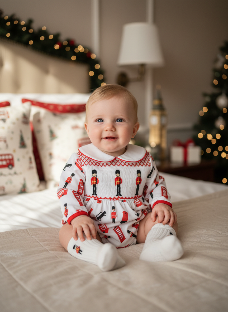 Ocean Baby Boys London Soldier Smocked Bubble Suit Set White (NB-2Yrs)