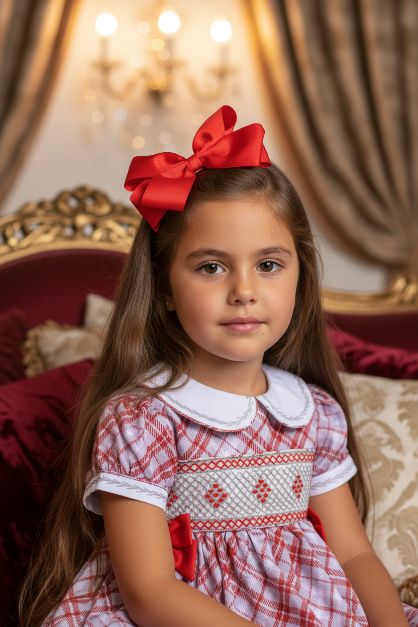 Ocean Baby Girls Red & Grey Plaid Smocked Petticoat Layered Dress (NB-8Yrs)