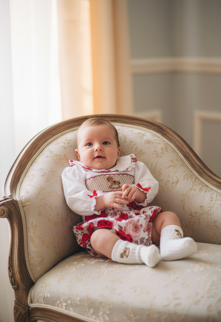 Ocean Baby Girls Rose Rocking Horse Smocked Buster Suit Set (3M-3Yrs)