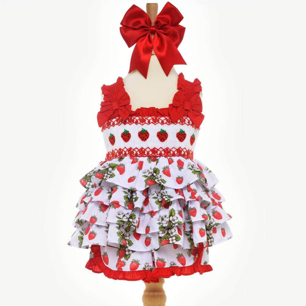 Ocean Baby Girls Afternoon Tea Strawberries Smocked Shorts Set (12M-10Y)