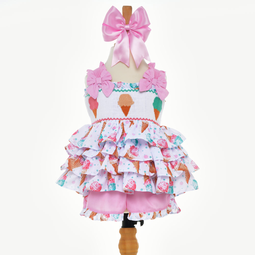 Ocean Baby Girls Icecream Ruffle Smocked Shorts Set (12M-8Y)