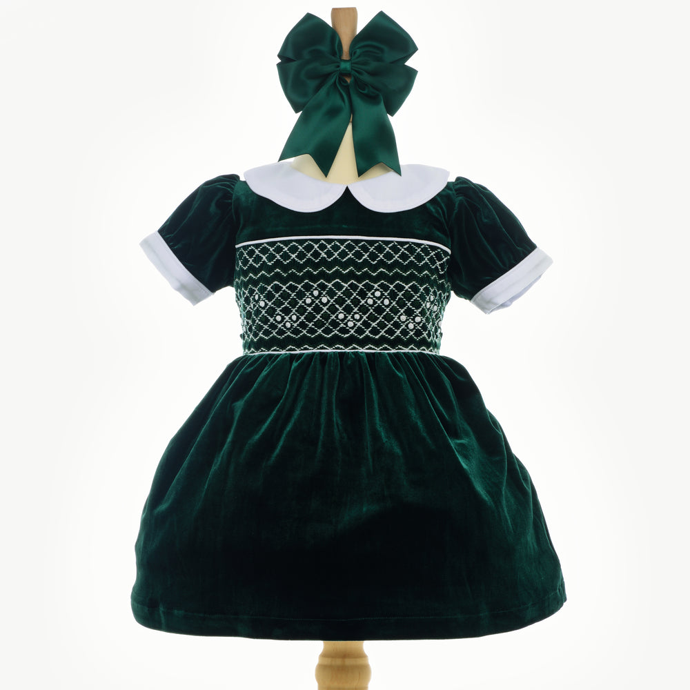 Ocean Baby Girls Emerald Velvet Smocked Petticoat Layered Dress (NB-10Yrs)