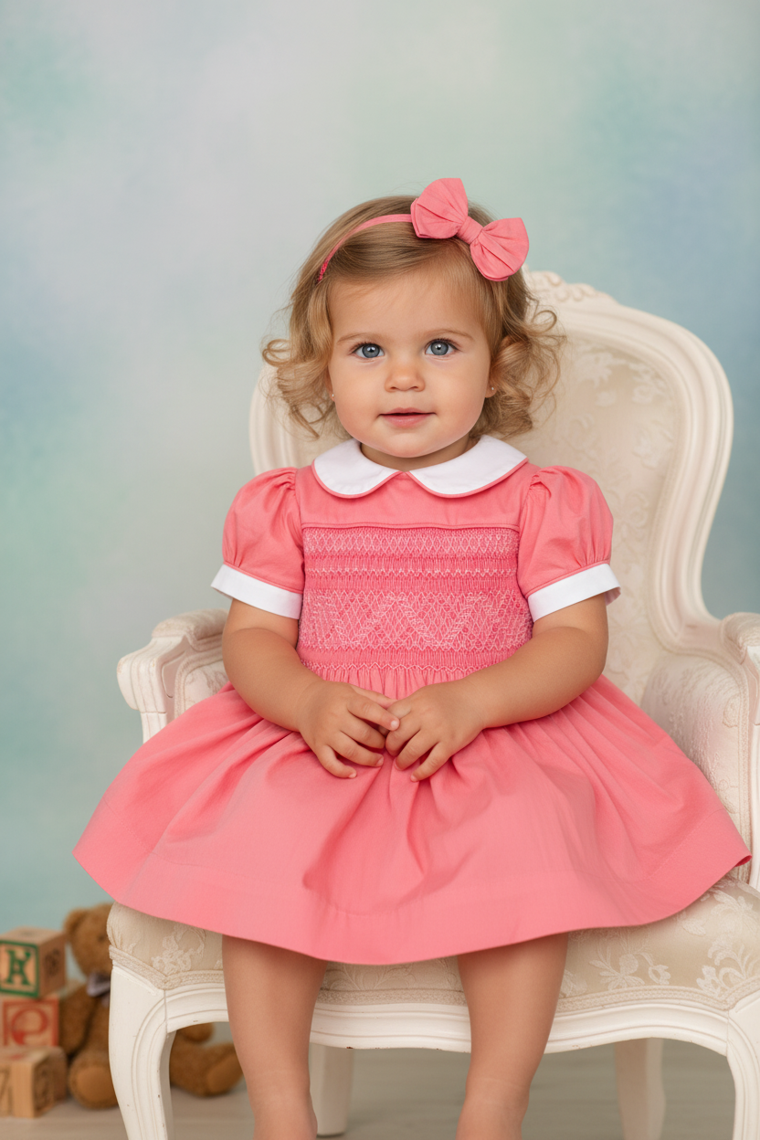 Ocean Baby Girls Salmon Sateen Smocked Petticoat Layered Dress - (NB-10Yrs)
