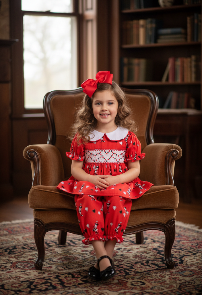 Ocean Baby Girls Red Rocking Horse Smocked Cardigan & Pants Outfit (NB-4Yrs)
