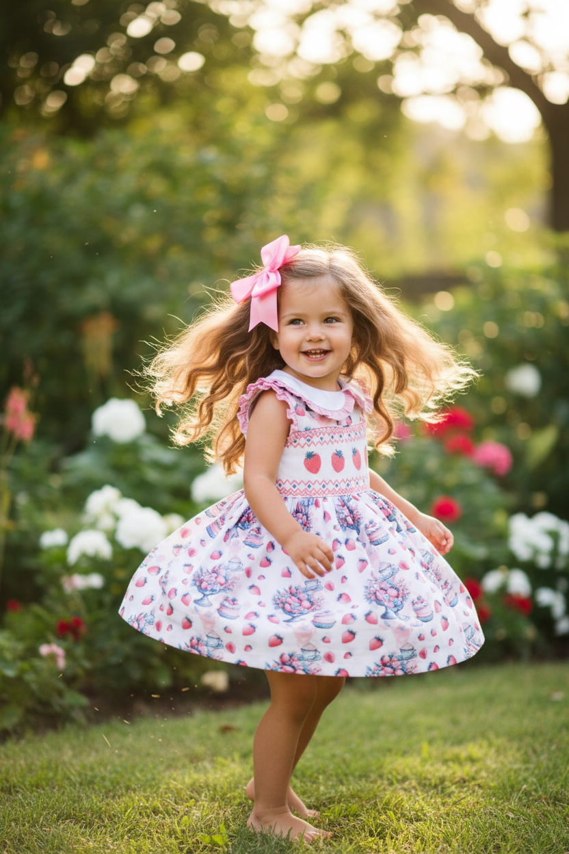 Ocean Baby Girls Afternoon Tea Strawberries Smocked Petticoat Layered Dress - (6M-8Yrs)