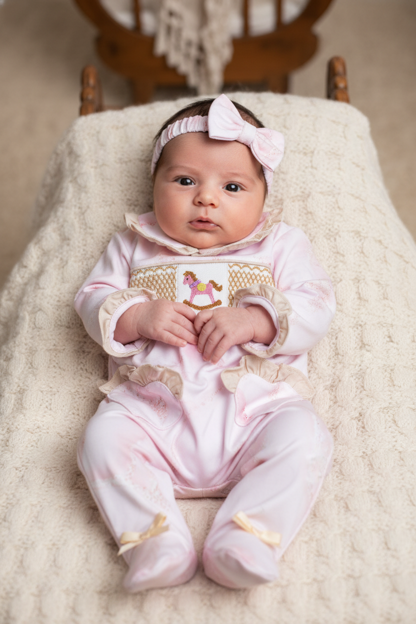 Ocean Baby Girls Smocked Rocking Horse Sleepsuit & Headband Set (NB-18M)