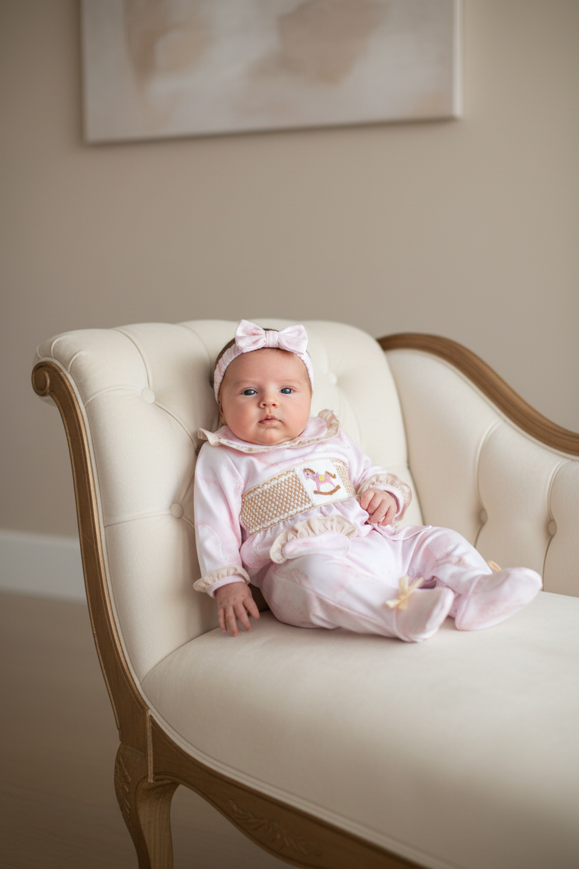 Ocean Baby Girls Smocked Rocking Horse Sleepsuit & Headband Set (NB-18M)