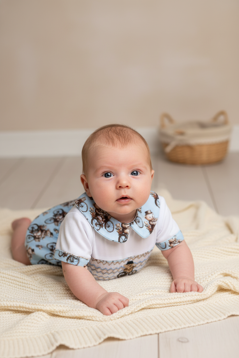 Ocean Baby Boys Smocked Cycling Vintage Teddy Bear Buster Suit Set (NB-2Yrs)