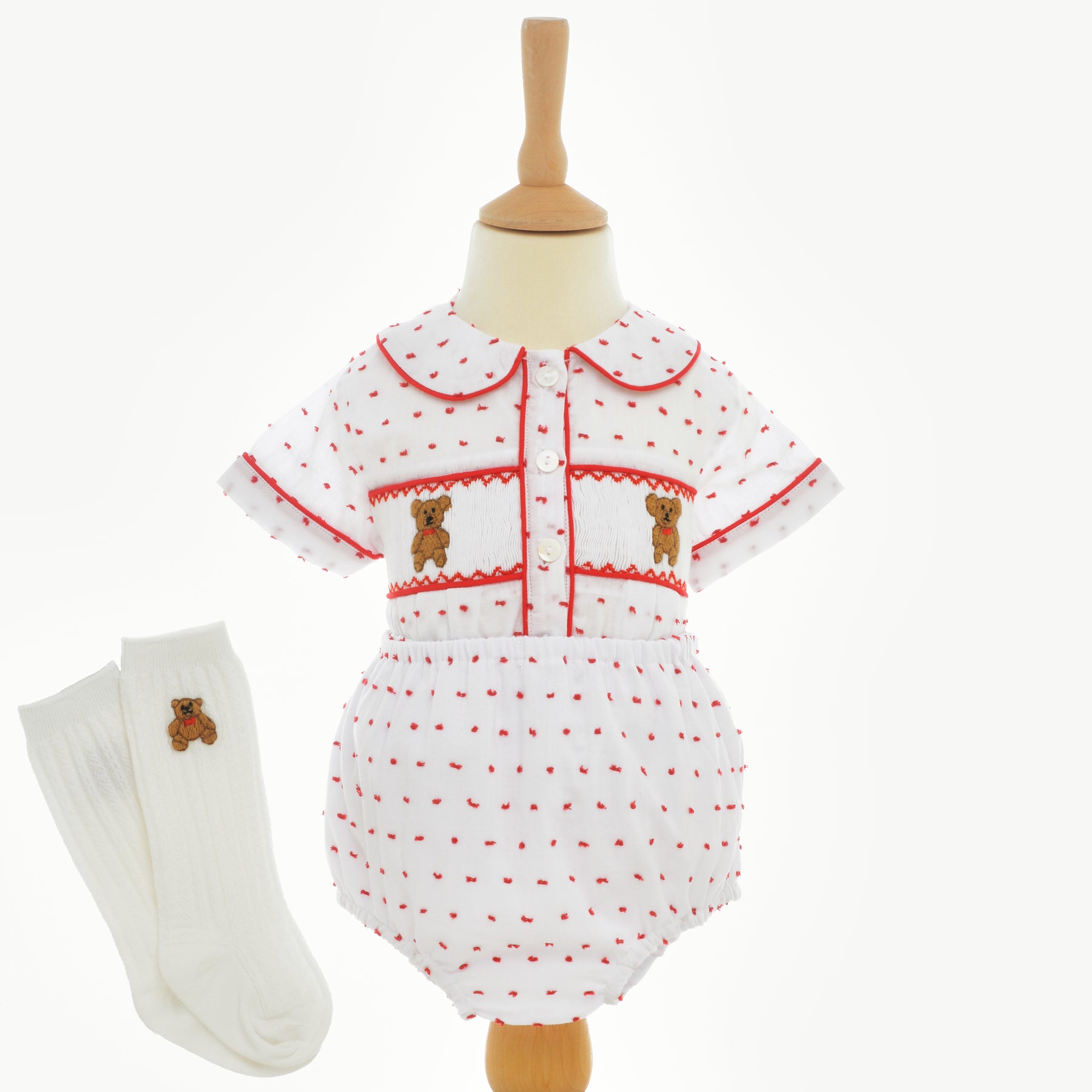 Ocean Baby Boys Swiss Dot TeddyBear Smocked Buster Pants Outfit (NB-3Yrs)